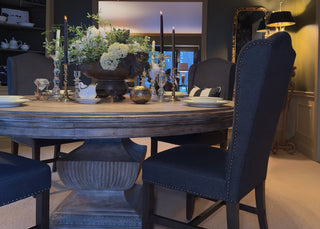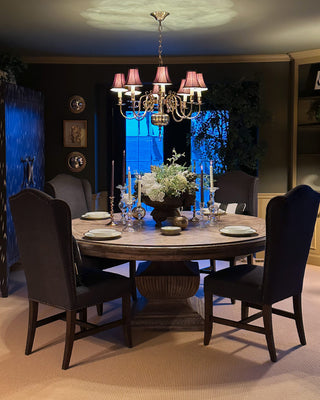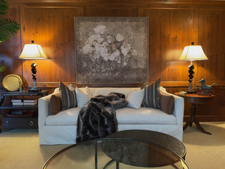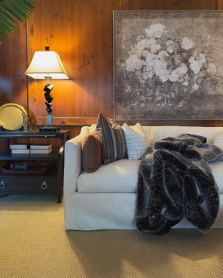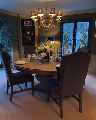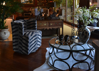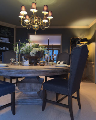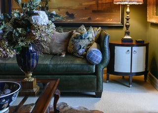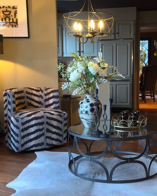 What started as a simple search for a new sofa quickly spiraled— in the best way possible— into a full-scale reinvention of the home. For our long-time client (who never shies away from a bold choice), this project was about more than just furniture—it was about creating a space that felt layered, storied, and undeniably luxe, with a little drama and a lot of personality. From the front entertaining room to the casual dining area, every inch was reimagined with a mix of vintage charm, statement pieces, and a rich, moody palette.