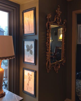 One of the simplest yet most transformative updates? The walls. Out went the soft, unremarkable yellow, and in came a deep avocado green that instantly took the space from "nice" to "wow." This moody, dramatic backdrop lets our client’s Rococo and Baroque mirror collection shine, adding layers of history and grandeur. The shift from light to dark was intentional—a bold move that paid off, bringing richness, coziness, and a touch of old-world allure.