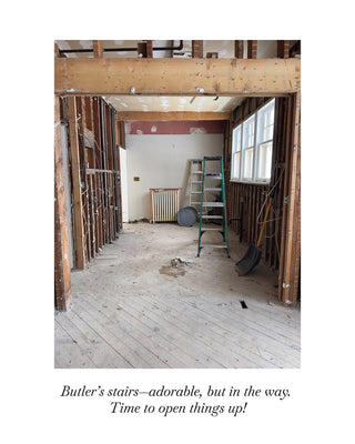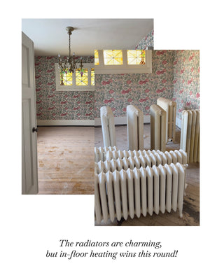 The original radiators are also on their way out, making room for in-floor heating. “They’re charming, but we’re prioritizing function,” Liz explains.