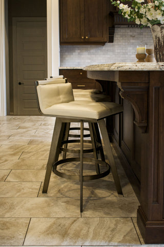 In the kitchen, Art Deco–inspired barstools offer a stylish yet practical finish. The low-profile design and antique brass details complement the home’s hardware and lighting, adding a touch of polish to one of the most-used spaces in the home. The result is a harmonious, thoughtfully designed kitchen that feels both modern and inviting.