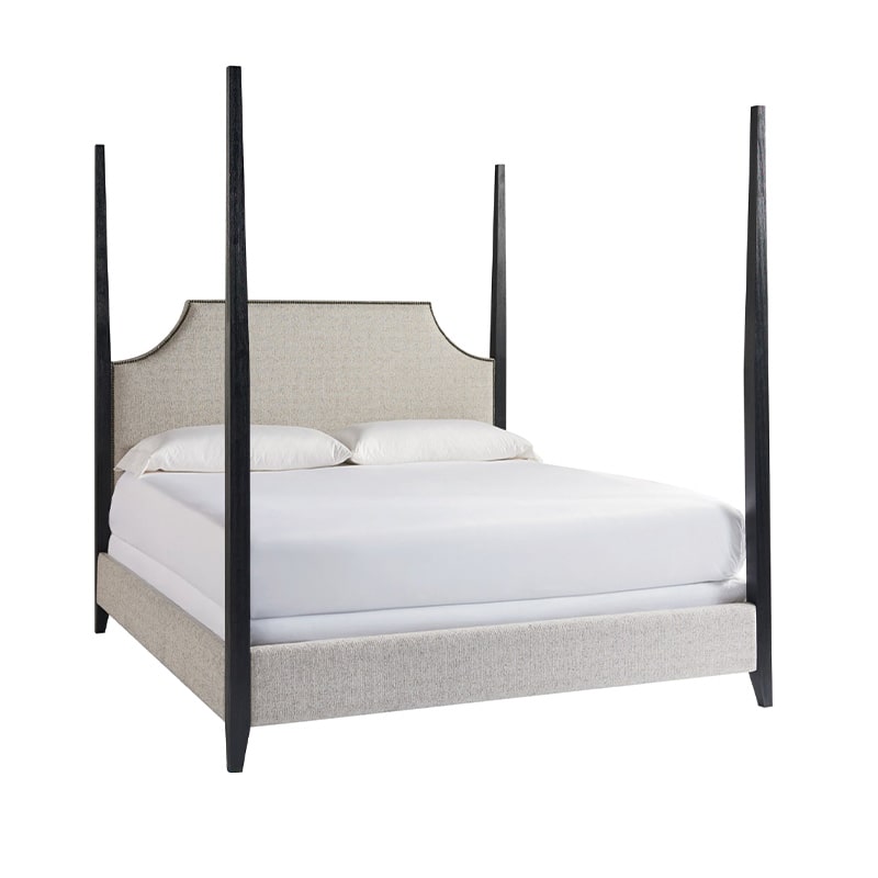 A modern take on the classic poster bed, the Stanton King Bed blends timeless design with a fresh mix of tone and material. Upholstered in Coconut Metal fabric with sleek Coal-finished accents, this piece brings understated luxury and elegance to any bedroom retreat.