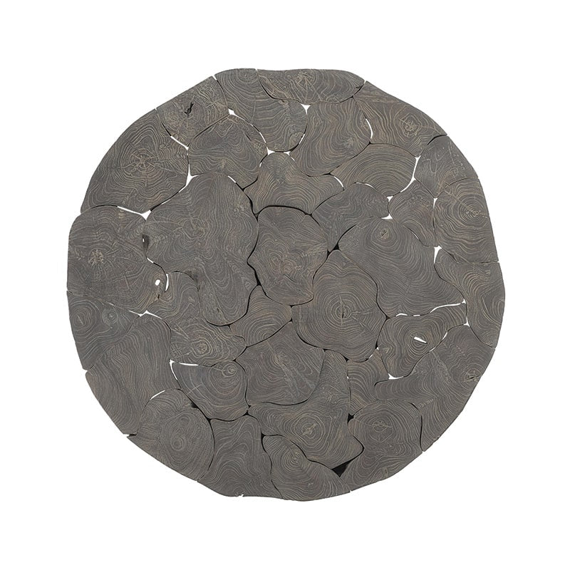 Minimalist form meets organic beauty in the Calavaras Cocktail Table. Crafted from sliced teak pieces that fit together like a puzzle, this round table showcases natural texture and individuality. Finished in smoked truffle, it adds warmth, personality, and a touch of modern rustic charm to any living space.
