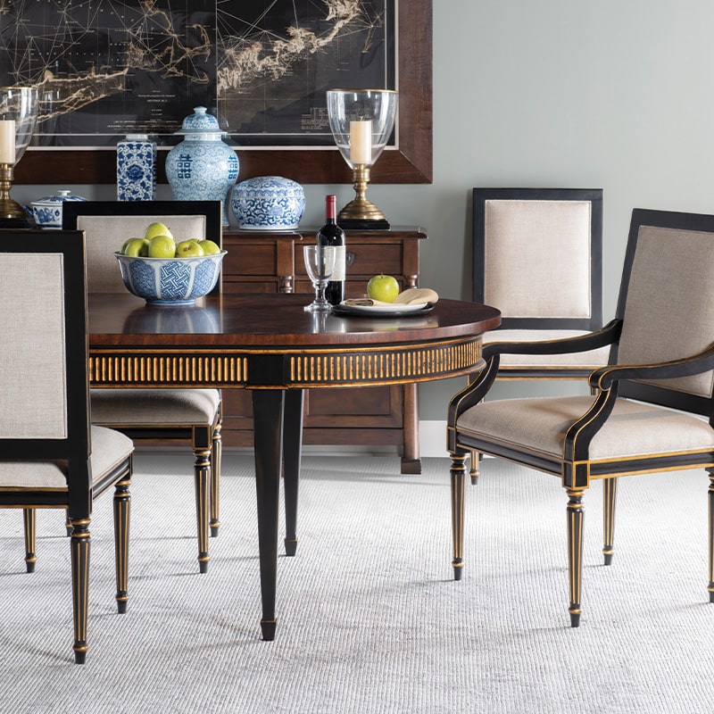 Fluted turned legs and framed aprons for Regency-inspired elegance