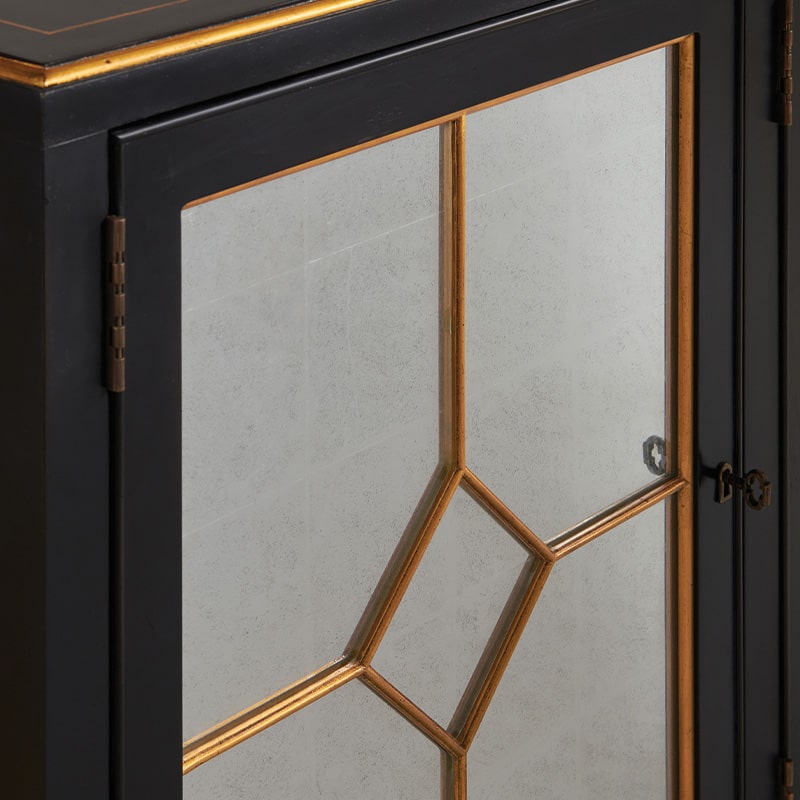 • Eglomise mirrored door fronts with gold striping
