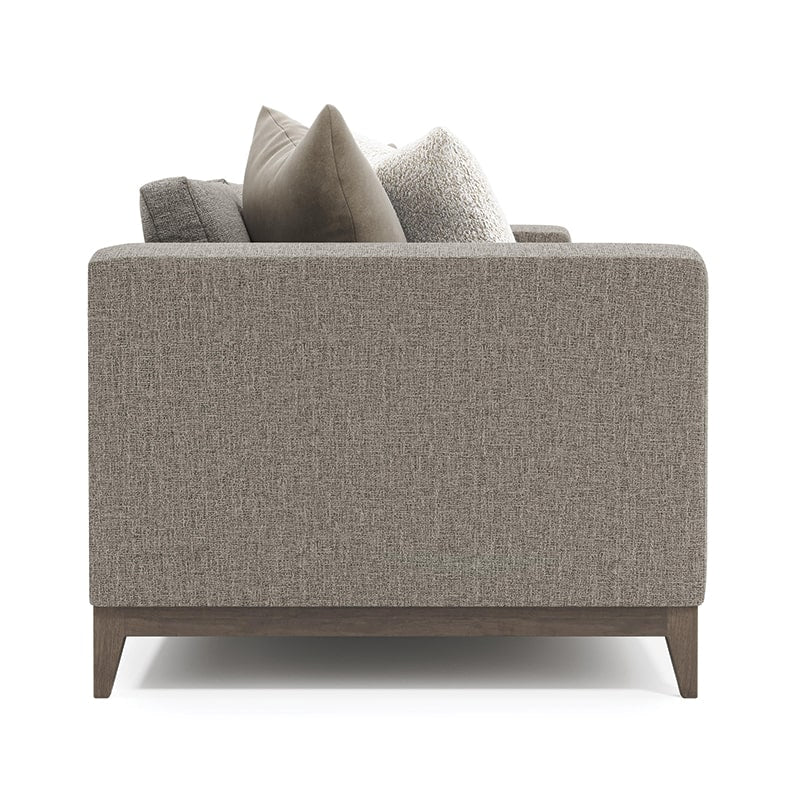 Deep, cushioned seating invites you to sink in, while its oversized track arms, box-edge border pillows, and tapered legs add a refined, tailored touch. The exposed wood frame brings just the right amount of structure and contrast, giving the piece its modern, sophisticated edge.
